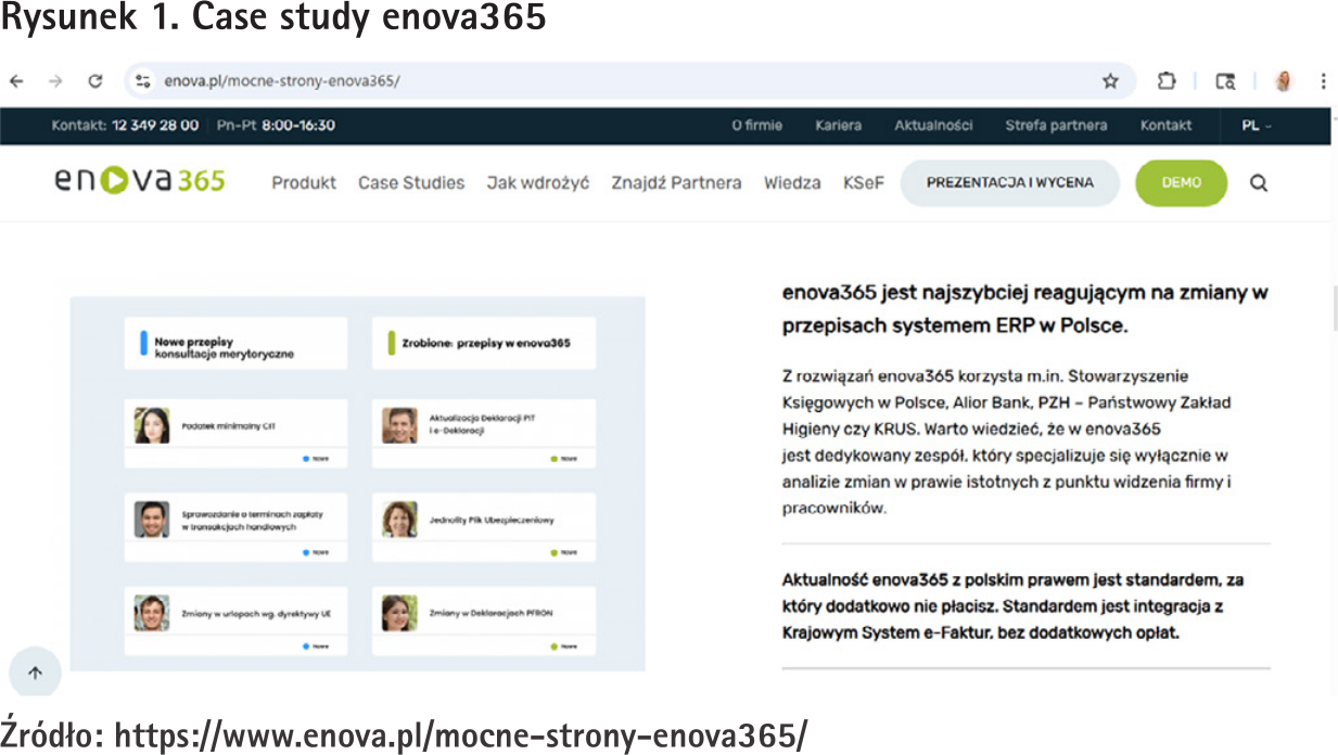 Przyjrzyjmy się stronie internetowej polskiego producenta oprogramowania ERP, enova3653. Jeden z nagłówków prezentujący mocne cechy rozwiązania (czyli jednego z elementów ich USP) brzmi: „Polski system klasy ERP biznes”, i „najszybciej reagujący na zmiany w przepisach systemem ERP w Polsce”.